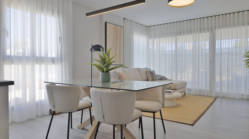 Denna bostadsutveckling är ett nytt exklusivt komplex i Mijas Costa – ett av Costa del Sols mest eftertraktade områden. Projektet omfattar 166 lägenheter med 2 och 3 sovrum samt penthouse med 3 och 4 sovrum. Här finns fantastiska gemensamma utrymmen, inklusive en lekplats för barn. Lägenheter på bottenplan har terrasser och privata trädgårdar. Alla kök har köksöar och alla sovrum har direkt tillgång till stora terrasser.